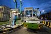 The image shows the electric prime mover fleet on the quayside at the Port of Tanjung Pelepas