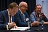 The image shows Photo: Mark Lengton, Joseph Krapf and Paul Vosbeek signing the agreement