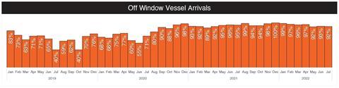 - More than 90 per cent of vessels since November 2020 to end July 2022 arriving outside of their allocated berthing windows – Figure 1.