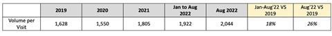 - Carrier rationalisation measures that have seen a 18 per cent uplift in per call over-the-quay box movements in the period Jan-Aug’ 2022 compared to the same period in 2019 – Table 1.